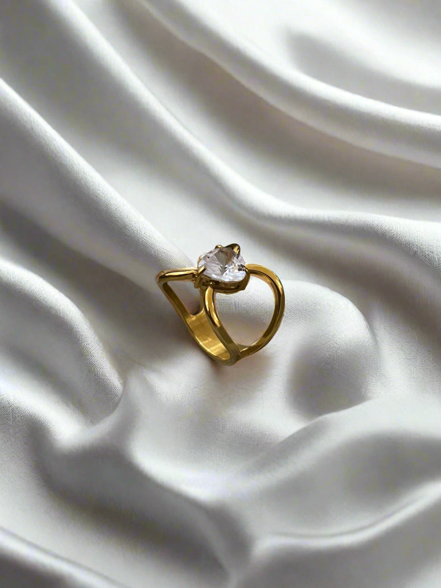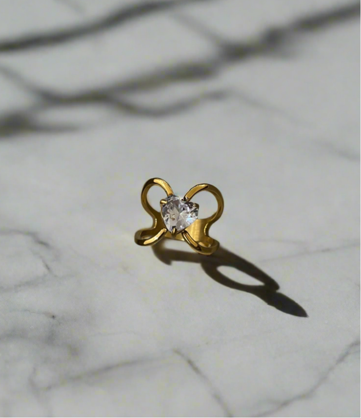 Delicate yet full of presence, the Bellaria Ring captures the essence of a blooming heart. A graceful openwork design surrounds a luminous heart-shaped stone, symbolizing elegance, romance, and new beginnings. Perfect for those who adore jewelry that feels as light and radiant as a breath of fresh air.