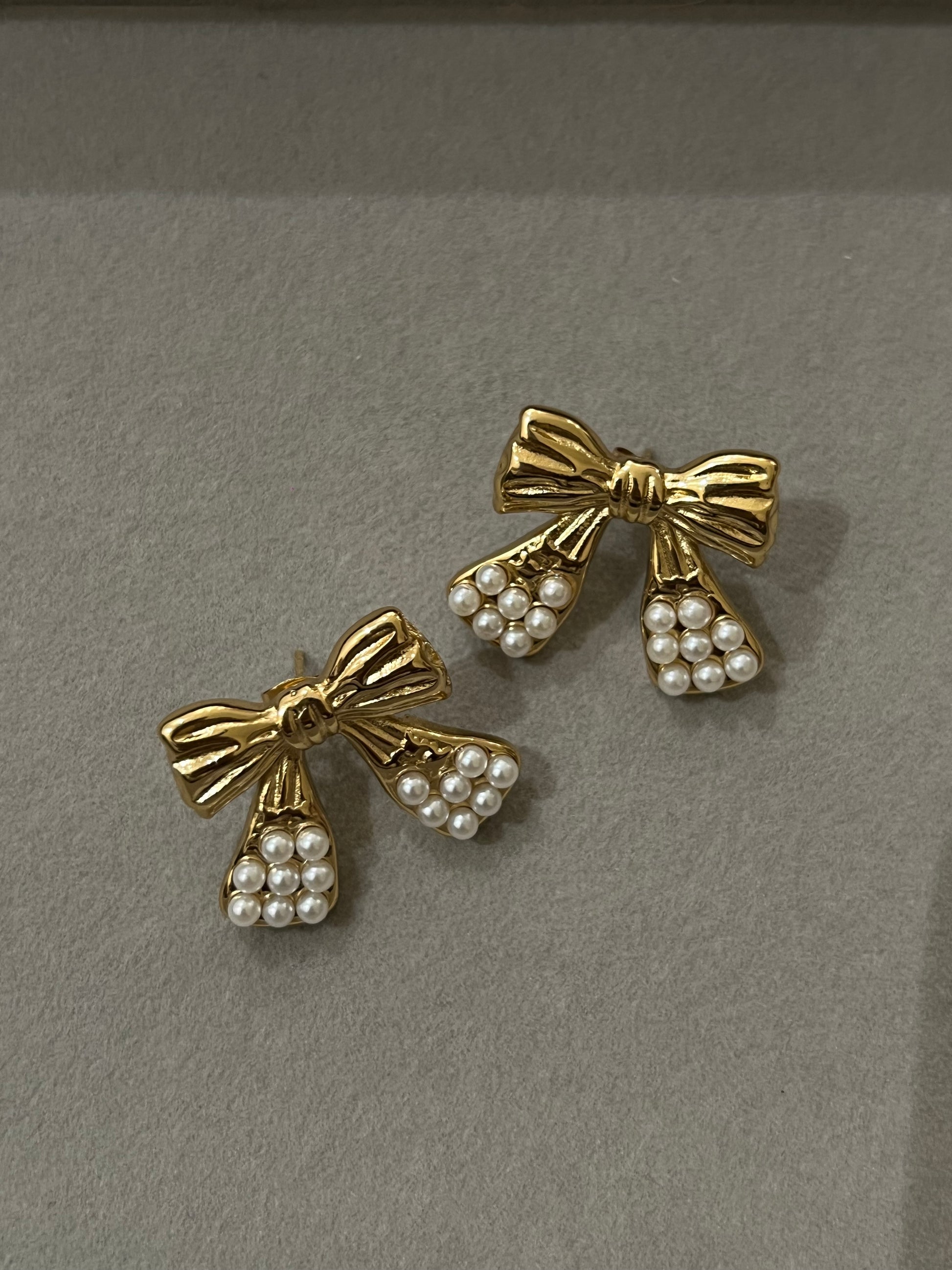 Where elegance meets charm — the Bijou Ribbon earrings are a dainty blend of vintage allure and modern grace. With lustrous pearls nestled in sculpted gold bows, they add the perfect high-fashion finish to any look. A true jewel for your collection.