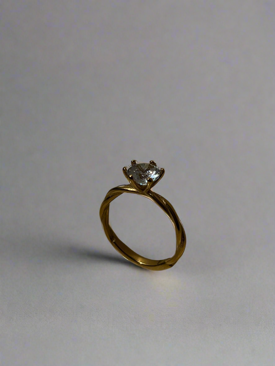 A poetic blend of elegance and modern artistry, Celeste Twist features a radiant solitaire nestled in a twisted 18K gold band. The subtle design twist adds a contemporary touch to its classic form, making it the perfect statement for those who cherish quiet luxury. Handcrafted to perfection for everlasting brilliance.