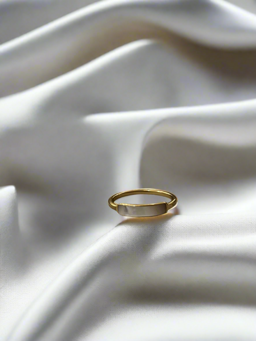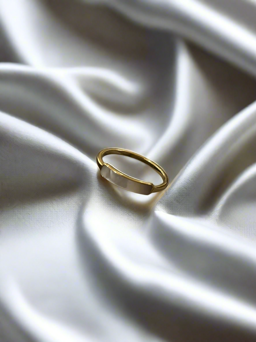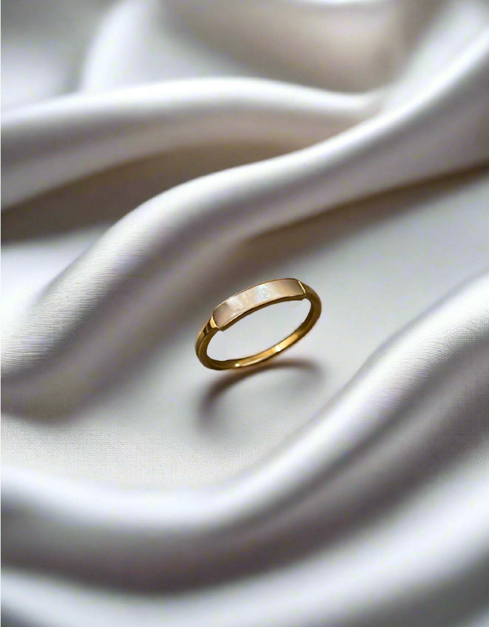 A timeless dance of light and elegance. Crafted with a lustrous mother-of-pearl finish set in a sleek gold band, the Luna Band captures the soft glow of moonlight in every glance. A symbol of serenity, beauty, and new beginnings.