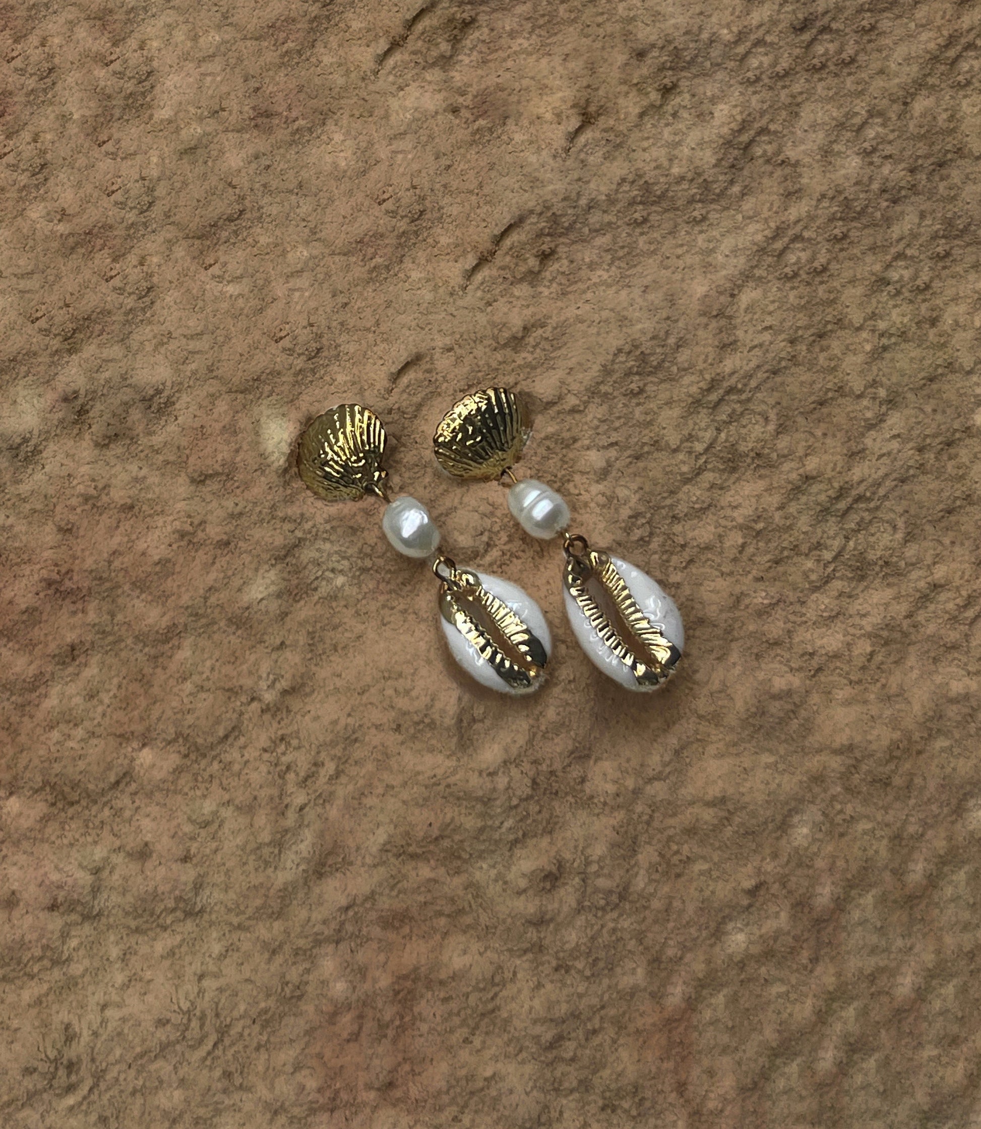 Channel the beauty of the sea with the Ocean Muse Earrings, a perfect blend of gold-plated shells, freshwater pearls, and delicate cowrie charms. These elegant dangles evoke the serenity of ocean waves and the treasures of the shore, making them an effortless statement piece for beach lovers and dreamers alike. Lightweight and versatile, they add a touch of coastal charm to any look, from casual summer days to elegant evening escapes.