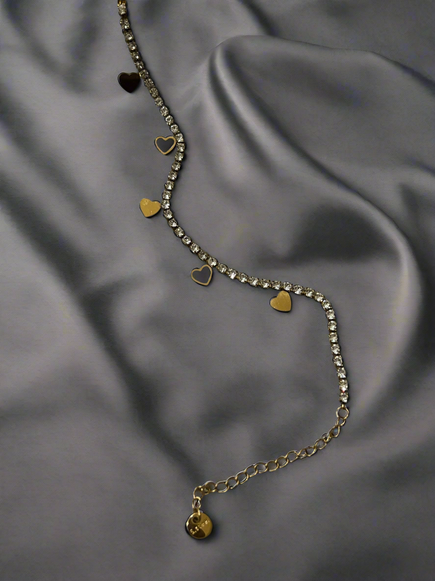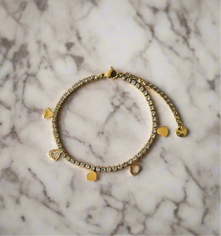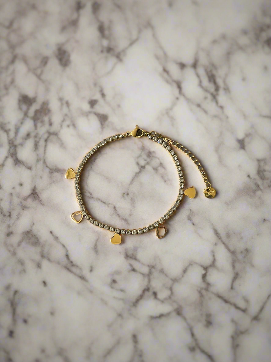 A playful mix of shimmer and charm, this bracelet features dainty hearts that dance with every move. Light-catching, mood-lifting, and perfect for stacking — it’s your daily dose of sparkle with a pop of love.