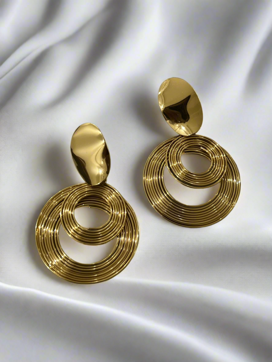 Bold, radiant, and endlessly captivating — Nova Loops are made to turn heads. Inspired by cosmic orbits and golden motion, these earrings bring a statement twist to any outfit. Lightweight yet powerful, they’re your go-to for instant glow.
