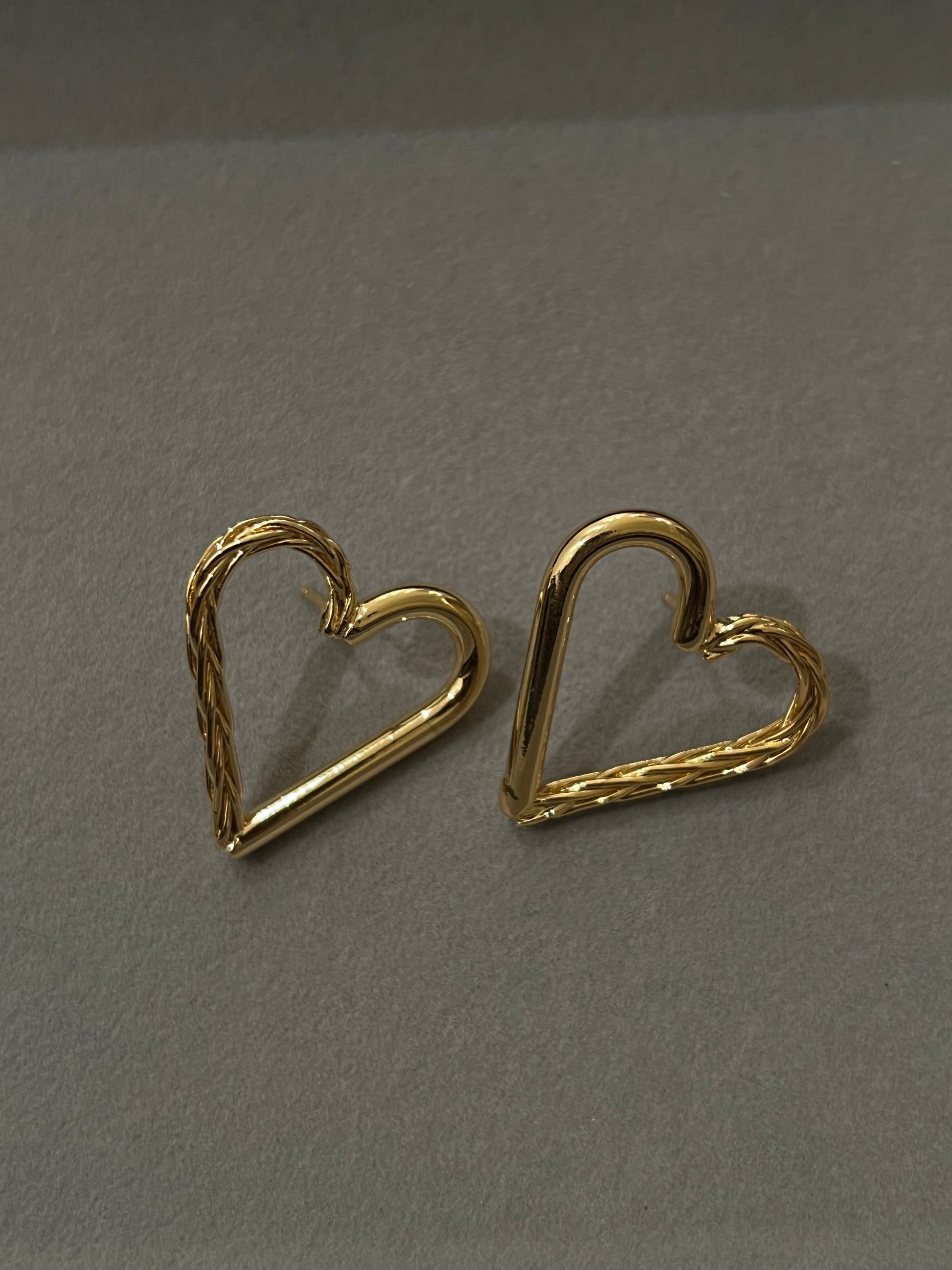 A modern take on classic romance — the Twist of Love earrings feature an open heart silhouette with a delicate blend of smooth and twisted textures. Crafted in radiant gold, these earrings are a subtle yet striking symbol of love’s beautiful complexities. Perfect for everyday charm or a touch of elegance on special nights.