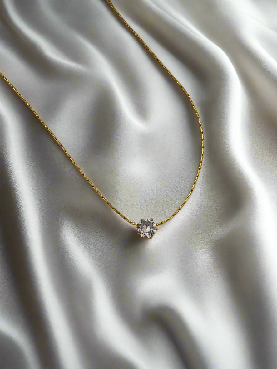 Elevate your everyday elegance with the Celestia Necklace — a delicate gold chain crowned with a luminous solitaire. Inspired by the serene beauty of the night sky, Celestia adds a subtle sparkle to your look, making it perfect for both everyday moments and special occasions.